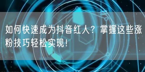 通过精准定位、优质内容创作、互动策略、定期更新、合作推广、利用热门话题和趋势、持续优化和改进以及耐心和坚持等方法,你可以快速成为抖音红人。祝愿你在抖音平台上展示自己的才华和魅力,实现成为红人的梦想!