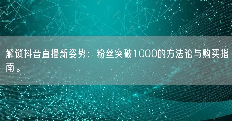 通过本文的介绍,相信你已经了解了如何在抖音直播中突破粉丝数量,实现了粉丝突破1000的目标。同时,我们也为你提供了购买指南和案例分析,帮助你更好地进行抖音直播。希望你在未来的直播生涯中不断进步,吸引更多粉丝关注。